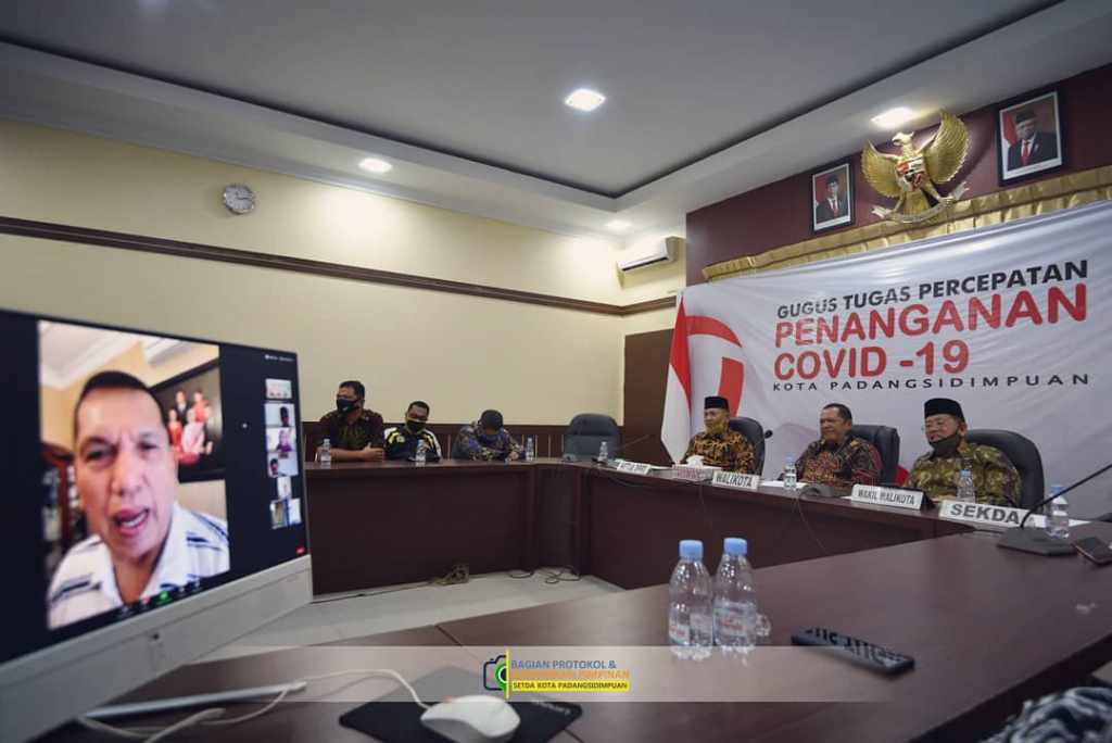Walikota Padangsidimpuan Irsan Efendi Nasution mengikuti rapat koordinasi yang dipimpin Wakil Gubernur Sumatera Utara Musa Rajekshah, KPK, OJK, Pemda se-Sumatera Utara dan Bank Sumut terkait optimalisasi pendapatan daerah dan pencegahan korupsi dalam sektor Perbankan, melalui Aplikasi Zoom, Selasa, (30/6) Pukul 09.00 s/d 12.00 WIB. Untuk menindaklanjuti Fokus Aksi Pencegahan Korupsi yang tertuang dalam Perpres No 54 Tahun 2018 tentang Strategi Nasional. Pencegahan Korupsi yaitu Aksi Optimalisasi Penerimaan Pajak & Non Pajak pada Fokus Keuangan Negara dan Keputusan Mendagri No 62 Tahun 1999 tentang Tugas Pokok Bank Pembangunan Daerah terkait Pengembangan Perekonomian dan menggerakan Pembangunan serta peningkatan pendapatan daerah. Paparan yang disampaikan oleh Keynote Speaking Wagubsu Narasumber KPK perwakilan Sumut, Ka.OJK Regional 5 Sumut dan dimoderatorin oleh Bpk. Azril dari KPK-RI Pusat Divisi Korsupgra unit Pencegahan. Wako Irsan Efendi didampingi Wakil Wali Kota, Sekdako Padangsidimpuan, Kepala Cabang Koordinator Bank Sumut Padangsidimpuan, Para Asisten, Kaban Keuangan Daerah, Inspektur, Kadis Kominfo, dan Kabag Protokol dan Komunikasi Pimpinan. @Sumber : Bagian Protokol & Komunikasi Pimpinan Setdako Padangsidimpuan