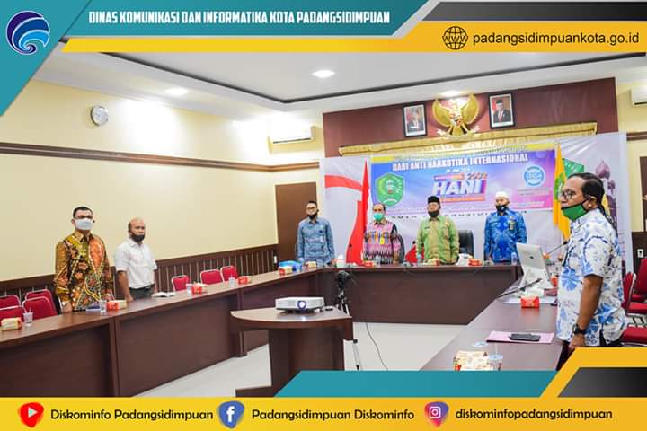 Wakil Walikota dan Sekda ikuti Peringatan Hari Anti Narkotika Internasional (HANI) Tahun 2020 secara virtual. Dalam memperingati Hari Anti Narkotika Internasional Tahun 2020 dengan tema ” Hidup 100% di Era New Normal sadar, sehat, produktif, dan bahagia tanpa Narkoba” yang di hadiri oleh Wakil Walikota, Sekda, mewakili BNN Tapsel, Asisten, Staff Ahli, Kepala Dinas OPD Terkait, Camat dan undangan lainnya, di laksanakan di Aula Kantor Walikota Padangsidimpuan secara virtual, Jumat (26/06/2020). Acara Virtual ini di pimpin langsung oleh Wakil Presiden Republik Indonesia K. H. Ma’ruf Amin yang diawali dengan menyanyikan lagu Indonesia Raya, laporan dari kepala BNN RI dan sambutan Menpan RI, yang dihadiri oleh Ketua DPR – RI, Ketua Mahkamah Agung, Ketua Komisi Yudisial RI dan beberapa Menteri terkait lainnya. Disiarkan langsung melalui TVRI dan Aplikasi Video Conference, Gubernur, Bupati/Walikota se-Indonesia menyaksikan bersama. Kepala BNN Komisaris Jendral Pol. Drs. Heru Winarko, SH dalam laporannya menyampaikan dengan adanya situasi saat ini kita harus tetap mempunyai tekad dan semangat untuk pantang menyerah, bergotong royong, dan mempunyai empati dalam menghadapi situasi pandemi ini. Sehingga tahun ini peringatan HANI tahun 2020 diselenggarakan dengan menggunakan teknologi secara virtual, namun tidak mengurangi kekhidmatan dan tujuan mulia dalam memberantas narkoba di Indonesia. Wakil Presiden K.H Ma’ruf Amin yang memimpin acara menyampaikan Apresiasinya kepada BNN Pusat, Provinsi, dan Kab/Kota yang telah bersinergi dalam memberantas Narkotika dan peredarannya di Indonesia yang kita cintai ini. Semoga dengan diperingatinya Hari Anti Narkotika Internasional ini bisa menjadi kekuatan bangsa khususnya Indonesia untuk memerangi dan melawan peredaran serta penyalahgunaan narkoba. Usai peringatan Hari Anti Narkotika Internasional, Wakil Walikota Padangsidimpuan Ir. H Arwin Siregar, MM menghimbau kepada Hadirin yang mengikuti acara ini agar senantiasa bekerjasama baik dari Pemerintah Daerah maupun Masyarakat untuk menjaga Kota Padangsidimpuan dari Bahaya Narkoba, sesuai dengan tema peringatan Hari Anti Narkotika Internasional, yakni “Hidup 100% di Era New Normal sadar, sehat, produktif dan bahagia tanpa Narkoba”.