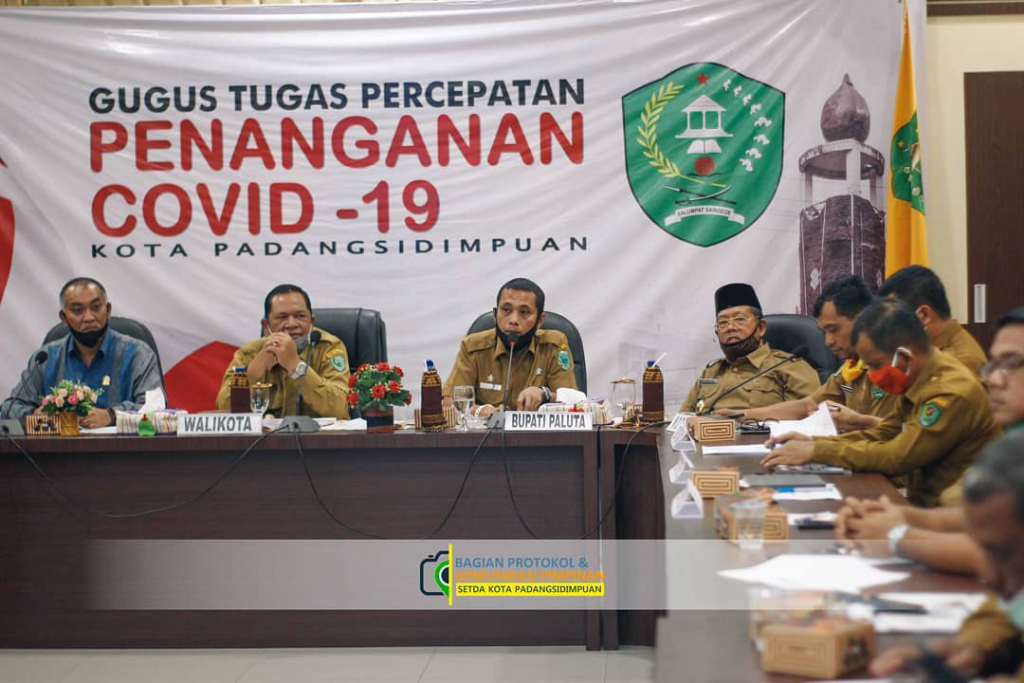 Kepala Daerah se-Kawasan Tapanuli Bagian Selatan menerima Kunjungan Anggota DPRD Provinsi Sumatera Utara Dapil Sumut 7 di pusatkan di Kantor Walikota Padangsidimpuan, Selasa (7/7). Kunjungan Anggota DPRD Sumut yang dipimpin Wakil Ketua I DPRD Sumut Harun Mustafa Nasution, Gerindra dan 8 Anggota DPRD Dapil Sumut 7. Abdul Rahim Siregar, PKS, Tondi Roni Tua, Demokrat, Ahmad Fauzan, PAN, Fahrizal Effendi Nasution, Hanura, Rahmat Rayyan Nasution, Gerindra, Parsaulian, Nasdem, Syahrul Effendi Siregar, PDIP Syamsul Qamar, Golkar. Walikota Padangsidimpuan Irsan Efendi Nasution dalam sambutannya mengucapkan selamat datang di daerah Tapanuli Bagian Selatan, semoga kedatangan Wakil Rakyat kami di Sumut membawa kemaslahatan bagi kota Padangsidimpuan dan Tapanuli Bagian Selatan Umumnya, kata Wako Irsan. Beliau menambahkan, saat ini kita semua dalam suasana keprihatinan bersama. Kita semua berperang melawan Virus COVID-19, yang tentu akan berdampak pada kondisi ekonomi yang menurun, angka kemiskinan akan meningkat. “Semoga kedatangan Wakil Rakyat kami Anggota DPRD Sumut membawa perubahan positif dan memperjuangkan Kawasan Tabagsel untuk bangkit dimasa mendatang”, ucap Wako Irsan. Hadir dalam acara tersebut Walikota Padangsidimpuan Irsan Efendi Nasution, Bupati Padang Lawas Utara Andar Amin Harahap, Mewakili Bupati Tapanuli Selatan, Mewakili Bupati Mandailing Natal, Mewakili Bupati Padang Lawas, Wakil Walikota Padangsidimpuan Arwin Siregar, serta 14 OPD se-Kawasan Tabagsel. @Sumber : humaskotapadangsidimpuan