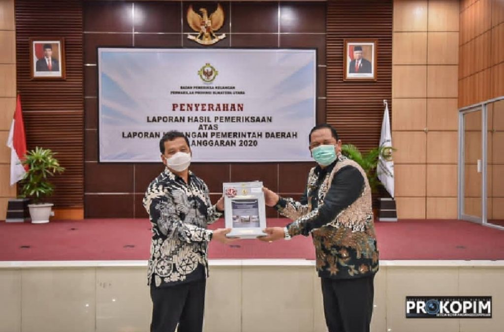 Pemko Padangsidimpuan berhasil meraih predikat Opini Wajar Tanpa Pengecualian (WTP) dari Badan Pemeriksa Keuangan (BPK) RI perwakilan Sumatera Utara dari hasil LHP LKPD tahun anggaran 2020. Wali Kota Padangsidimpuan Irsan Efendi Nasution SH mengatakan predikat tersebut bukan suatu kebanggaan, akan tetapi menjadikan tantangan yang harus diembannya dengan berat, Rabu 19 Mei 2021. “20 tahun Pemkot Padangsidimpuan itu merupakan usia yang dewasa, kedepan bagaimana kita merawat Kota Padangsidimpuan tersebut akan semakin menunjukkan arah peningkatan pembangunan dari segala sektor yang ada sekarang ini,” katanya. Pencapaian pembangunan di Kota Padangsidimpuan saat ini mungkin, kata dia, dapat diakses melalui Dinas Komunikasi dan Informatika karena itu juga bagian dalam penyebaran informasi yang lengkap dan akurat. “Apa yang kita peroleh itu tentunya juga bagian dari doa masyarakat Kota Padangsidimpuan kepada kami yang sedang mengemban amanah tersebut,” katanya. Sementara itu Ketua DPRD Kota Padangsidimpuan Siwan Siswanto menyampaikan bahwa ini adalah langkah dasar bagaimana kedepan peningkatan pembangunan terasa ditengah masyarakat. “Secara kelembagaan kami mengapresiasi opini WTP untuk Kota Padangsidimpuan,” katanya didampingi Wakil Ketua DPRD Erwin Nasution. @Sumber : Bagian Protokol Dan Komunikasi Pimpinan Setdako Padangsidimpuan