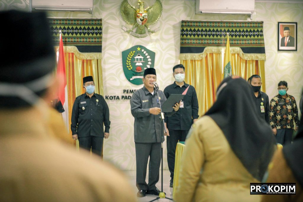 Walikota Padangsidimpuan Irsan Efendi Nasution SH hari ini, Jum’at (8/1/2021) melantik 13 Pejabat Administrator di Lingkungan Rumah Sakit Umum Daerah Kota Padangsidimpuan. Untuk meningkatkan dan memberikan pelayanan yang memuaskan kepada masyarakat padangsidimpuan, maka perlu adanya mutasi/promosi melalui pemberhentian/pengangkatan dalam jabatan administrator di lingkungan Rumah Sakit Umum Daerah Kota Padangsidimpuan. Pengambilan Sumpah dan Pelantikan tersebut dilaksanakan di Aula Kantor Walikota Padangsidimpuan berdasarkan Surat Keputusan Walikota Padangsidimpuan Nomor : 7/KPTS/2021 , tentang Pemberhentian/Pengangkatan dalam Jabatan Administrator di Lingkungan Rumah Sakit Umum Daerah Kota Padangsidimpuan. Usai melantik, Wako Irsan menyampaikan atas nama Pemerintah Kota Padangsidimpuan mengucapkan selamat dan sukses menjalankan tugas baru semoga dapat memberikan pelayanan yang memuaskan kepada masyarakat karena RSUD Kota Padangsidimpuan merupakan rumah sakit sentral rujukan di wilayah Tabagsel (Tapanuli Bagian Selatan). Beliau juga berharap agar bisa beradaptasi di lingkungan RSUD dan meningkatkan pelayanan, tingkatkan konsolidasi internal, bekerjsama dan memberikan pelayanan yang berkualitas. Wako Irsan juga menekankan agar dapat menindaklanjuti aduan-aduan dari masyarakat teratasi dengan baik, pelayanan tanggap, lingkungan bersih, jam kerja dokter maupun perawat tepat waktu, obat-obat tersedia baik dan terjamin, butuh kerja keras semua elemen , majukan RSUD Padangsidimpuan untuk bisa memberikan layanan kesehatan dengan baik tanpa terkecuali demi terwujudnya Padangsidimpuan yang BERSINAR (Berkarakter, Bersih, Aman Dan Sejahtera). Sumber : Bagian Protokol & Komunikasi Pimpinan Setdako Padangsidimpuan