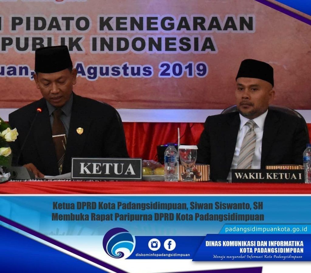 DPRD Kota Padangsidimpuan menggelar Rapat Paripurna di Gedung DPRD Kota Padangsidimpuan pada Jum’at (16 Agustus 2019). Ketua DPRD Kota Padangsidimpuan, Siwan Siswanto, SH membuka rapat sekitar pukul 10.00 dihadapan para hadirin. Untuk mendengarkan Pidato Kenegaraan Presiden Republik Indonesia yang disiarkan secara langsung dari Jakarta, Sekretariat DPRD Kota Padangsidimpuan menyediakan dua buah layar dan pengeras suara di dua sisi depan ruangan. Para hadirin rapat yang terdiri dari para pejabat Kota Padangsidimpuan dan masyarakat umum tampak antusias mendengar Pidato Kenegaraan Presiden Republik Indonesia, Joko Widodo. Pada akhir rapat tampak Walikota Padangsidimpuan, Irsan Efendi Nasution, SH dan Wakil Walikota Padangsidimpuan Ir. H. Arwin Siregar, MM berjabat tangan dengan para hadirin.
