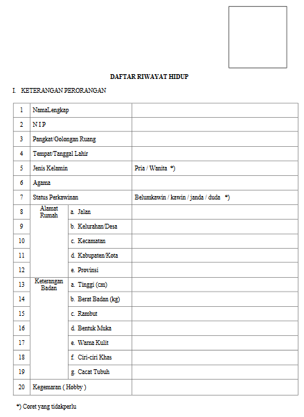 FORMAT DAFTAR RIWAYAT HIDUP PESERTA SELEKSI JPT PRATAMA