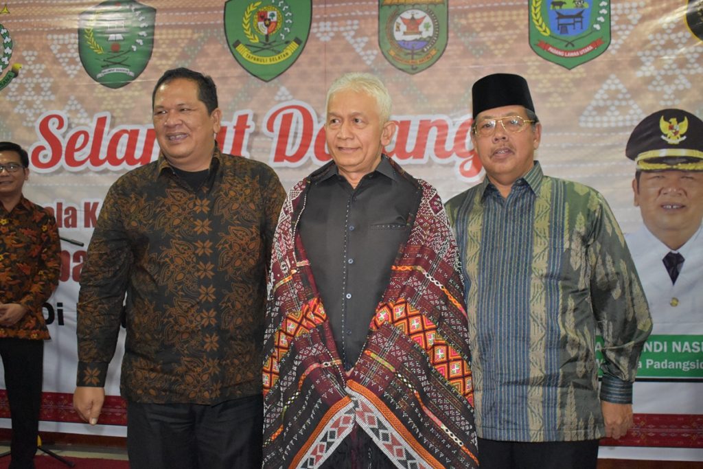 Walikota Padangsidimpuan Irsan Efendi Nasution S.H dan Wakil Walikota Ir. H. Arwin Siregar, M.M menyambut kunjungan kerja Kepala Kejaksaan Tinggi Sumatera Utara Bapak Fachruddin Siregar, SH.,MH di pendopo Kantor Walikota Padangsidimpuan pada hari Rabu , 6 February 2019. Dalam sambutannya Walikota Padangsidimpuan Irsan Efendi Nasution S.H mengucapkan selamat datang kepada Kepala Kejaksaan Tinggi Sumatera Utara Bapak Fachruddin Siregar, SH.,MH di Tapanuli Bagian Selatan tepatnya di Kota Padangsidimpuan. Walikota Padangsidimpuan mengharapkan dengan adanya kunjungan kerja sekaligus silaturahmi dan ramah tamah dengan Kepala Kejaksaan Tinggi Sumatera Utara Bapak Fachruddin Siregar, SH.,MH dapat menjadi penyemangat dalam melaksanakan tugas dan tanggung jawab. Pada kesempatan ini juga Walikota Padangsidimpuan Irsan Efendi Nasution S.H dan Wakil Walikota Ir. H. Arwin Siregar, M.M memberikan cinderamata kepada Bapak Kejaksaan Tinggi Sumatra Utara sebagai kenang kenangan. Dalam acara ini Pimpinan daerah dan Muspida se Tabagsel juga turut serta dalam menyambut kedatangan Kepala Kejaksaan Tinggi Sumatera Utara Bapak Fachruddin Siregar, SH.,MH.