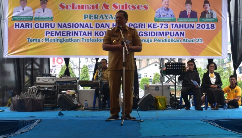 Perayaan Hari Guru Nasional dan juga HUT PGRI ke-73 tahun 2018 sekaligus kegiatan Gerak Jalan Santai diselenggarakan pada hari Selasa tanggal 18 Desember 2018. Acara tersebut dihadiri oleh Walikota Padangsidimpuan, Ketua Tim Penggerak PKK, OPD, Ormas, PGRI, dan juga dari Insan Pers. Walikota Padangsidimpuan memberikan arahan kepada semua guru pendidik dan juga melepaskan balon HUT PGRI yang ke- 73. Dalam pidatonya Walikota Padangsidimpuan menyampaikan bahwa guru adalah ruh bagi seluruh anak bangsa, seorang pahlawan tanpa tanda jasa yang juga sekaligus menjadi orang tua kita di sekolah ataupun di rumah. Kesuksesan seorang anak yang berguna bagi nusa dan bangsa adalah hasil dari jasa seorang guru. Perjuangan seorang guru harus menjadi sumber inspirasi bagi semua siswanya seperti kisah seorang guru yang dituliskan dalam novel Laskar Pelangi. Sebagai bentuk penghargaan Walikota Padangsidimpuan juga memberikan Piagam Penghargaan kepada para pensiunan guru. Pada puncak acara Walikota Padangsidimpuan melakukan pemotongan tumpeng HUT PGRI ke- 73 dan juga mengundi kupon hadiah pada kegiatan Gerak Jalan Santai.