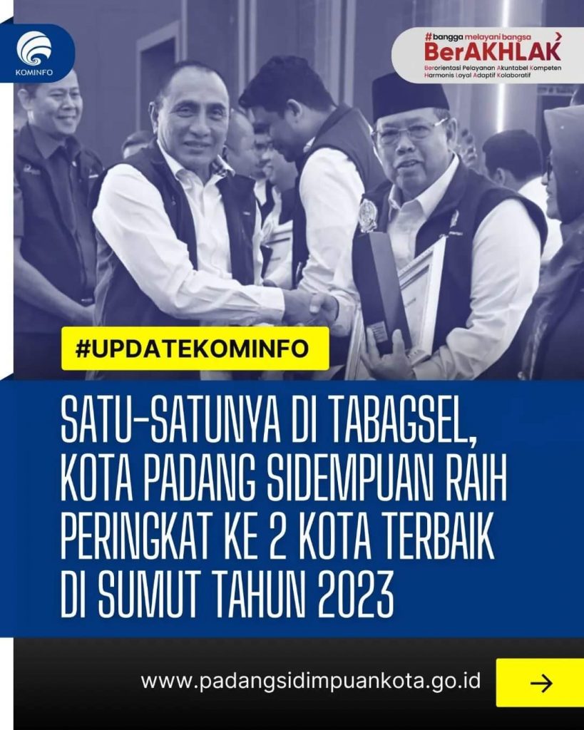 Satu-satunya di Tabagsel, Kota Padang Sidempuan Raih Peringkat ke 2 Kota Terbaik di Sumut Tahun 2023