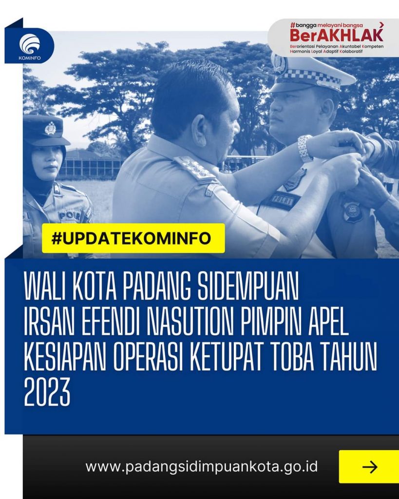 Wali Kota Padang Sidempuan Irsan Efendi Nasution pimpin apel kesiapan Operasi Ketupat Toba tahun 2023, Senin (17/04/2023) di Stadion HM Nurdin. Wali Kota Irsan Efendi Nasution, SH, MH saat menyampaikan sambutan Kapolri Drs. Listyo Sigit Prabowo, M.Si mengatakan bahwa apel gelar pasukan merupakan bentuk pengecekan akhir kesiapan pelaksanaan Operasi Ketupat 2023. Operasi Ketupat 2023 melibatkan 148.261 personel gabungan yang terdiri dari TNI-Polri Kementerian terkait, BNPB, BMKG, Basarnas, Pertamina, Jasa Raharja, Jasa Marga, Satpol PP, Dinas Perhubungan, Dinas Kesehatan, Pramuka dan Mitra Kamtibmas lainnya. “Nantinya para personel tersebut akan menempati 2.787 pos, dengan rincian 1.857 pos pengamanan, 713 pos pelayanan, dan 217 pos terpadu” ungkap Wali Kota membaca sambutan. Lanjut beliau, dalam operasi ini juga memastikan kelancaran hari raya Idul Fitri 1444 H, serta mewujudkan “Mudik yang Aman dan Berkesan” begitu pula pada saat arus balik, terdapat beberapa penekanan untuk dipedomani dan dilaksanakan yakni, Pertama, laksanakan tugas dengan sungguh-sungguh dan tanamkan dalam diri bahwa melakukan pengamanan dalam operasi ketupat 2023. Kedua, mengkedepankan langkah-langkah humanis, terapkan buddy system dan pedomani SOP. Ketiga, pastikan ketersediaan perlengkapan pribadi, sarpras dan berbagai fasilitas penunjang lainnya pada setiap pos pengamanan dan pos pelayanan terpadu. Keempat berbagai langkah-langkah yang dilakukan pada pengamanan arus mudik juga harus diterapkan pada arus balik. Kelima, pastikan informasi terkait kebijakan dan perkembangan situasi lalu lintas terkini tersampaikan dengan baik melalui iklan layanan masyarakat. Keenam, perkuat sinergitas dan soliditas antara petugas pengamanan maupun stakeholder terkait, pungkasnya. Sedangkan Kapolres Padang Sidempuan AKBP Dwi Prasetyo, S.IK, MH berharap momentum mudik tahun ini dapat menciptakan mudik yang selamat, baik keselamatan penumpang maupun pengemudi serta keselamatan yang melakukan pengamanan baik dari rekan instansi terkait maupun Kepolisian.