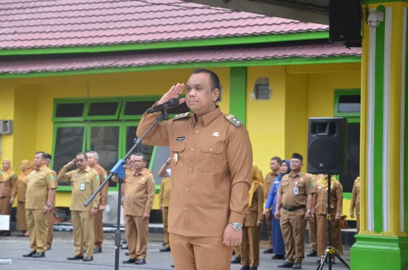 Wakil Wali Kota Padangsidimpuanmenjadi inspektur upacara pada apel gabungan yang dilaksanakan di Halaman Kantor Wali Kota Padangsidimpuan