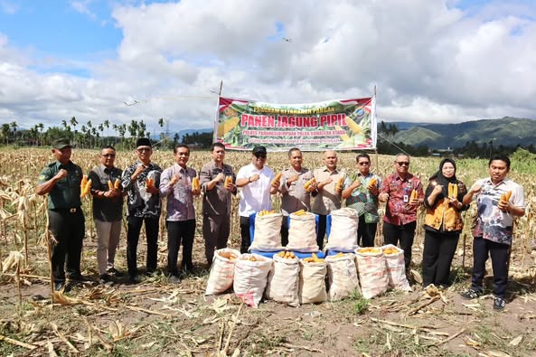 Wakil Walikota Padangsidimpuan Harry Pahlevi melaksanakan panen raya jagung serentak kuartal II dalam rangka swasembada pangan di Desa Siloting Kec. Padangsidimpuan Batunadua, Kamis (5/6/2025).