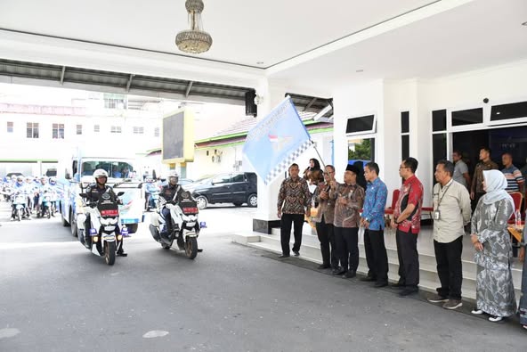 Wali Kota Padangsidimpuan, Dr. H. Letnan Dalimunthe, SKM, M.Kes lepas Kirab Konvoi ASN, Penyuluh KB dan Penyuluh Lapangan Keluarga Berencana yang dilaksanakan di Halaman Kantor Wali Kota Padangsidimpuan pada Kamis (26/06/2025).