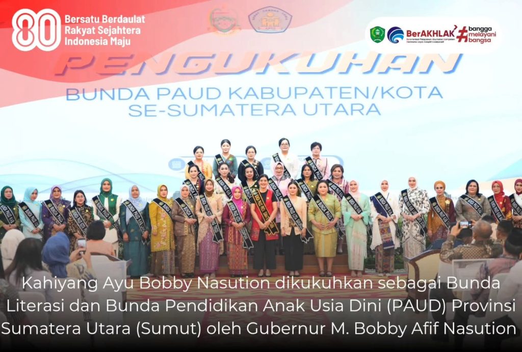 Kahiyang Ayu Bobby Nasution dikukuhkan sebagai Bunda Literasi dan Bunda Pendidikan Anak Usia Dini (PAUD) Provinsi Sumatera Utara (Sumut) oleh Gubernur M. Bobby Afif Nasution di Aula Raja Inal Siregar Kantor Gubernur, Rabu (13/8).