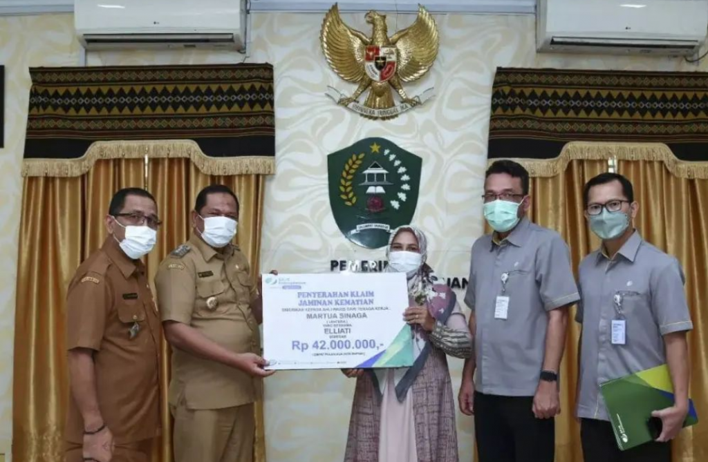BADAN PENYELENGGARA JAMINAN SOSIAL KETENAGAKERJAAN (BPJAMSOSTEK) CABANG KORDINATOR PADANG SIDEMPUAN BESERTA WALIKOTA PADANGSIDIMPUAN MENYERAHKAN SANTUNAN KLAIM JAMINAN KEMATIAN WARGA KOTA PADANGSIDIMPUAN