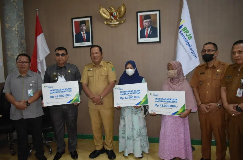 Pada akhir acara, BPJS Ketengakerjaan Cabang Kota Padang Sidempuan menyerahkan santunan klaim jaminan kematian masing-masing senilai Rp. 42.000.000,- kepada ahli waris.
