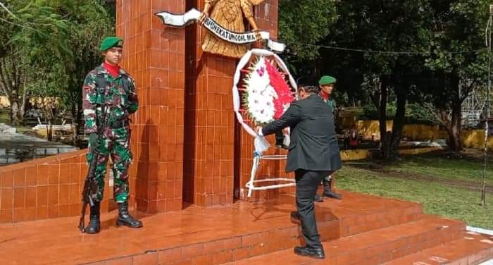 Peletakan karangan bunga dan tabur bunga ini serta memanjatkan do’a sebagai bentuk penghargaan dan penghormatan kepada para Pahlawan yang gugur di Medan perang.