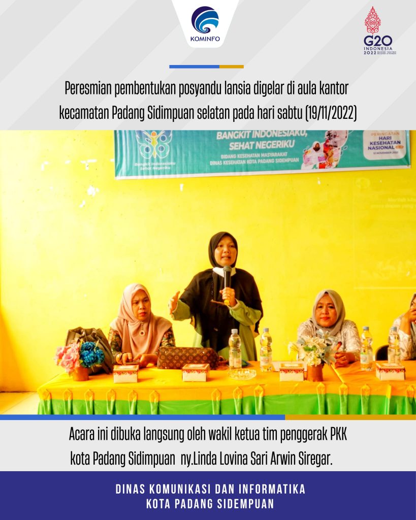 Ita Arbaiyah, SKM, M.Kes selaku Kepala Bidang Kesehatan Masyarakat mengatakan pembentukan Posyandu Lansia ini merupakan atas permintaan masyarakat wilayah Kecamatan Padang Sidempuan Selatan.