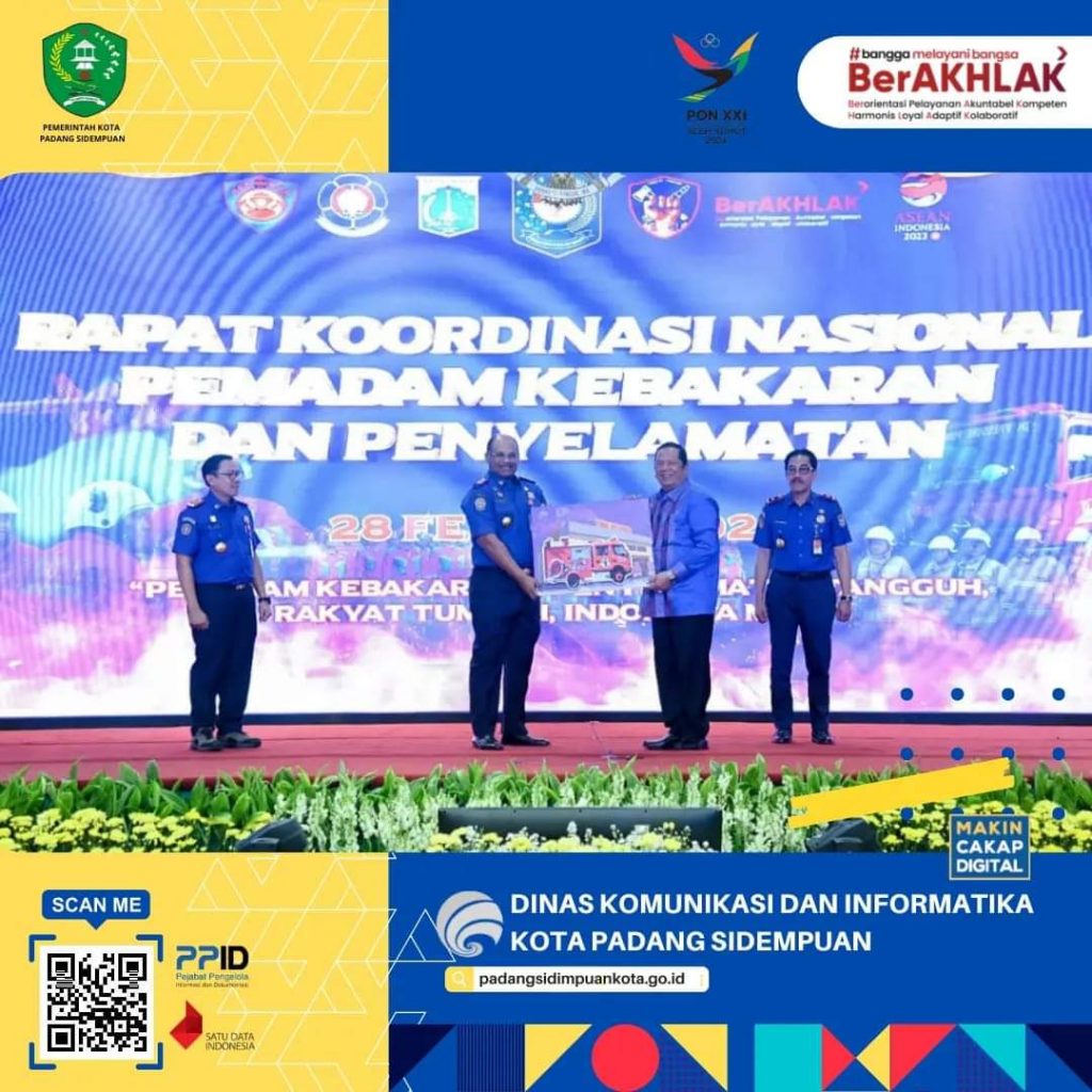 Walikota Padang Sidempuan Irsan Efendi Nasution, SH, MM menghadiri rapat Koordinasi Nasional Pemadam Kebakaran dan Penyelamatan dengan mengangkat tema “ Pemadam Kebakaran dan Penyalamatan Tangguh, Rakyat Tumbuh Indonesia Maju”, Selasa (28/2/23) di Puri Agung Convention Hall Grand Sahid Jaya Hotel, Jakarta.