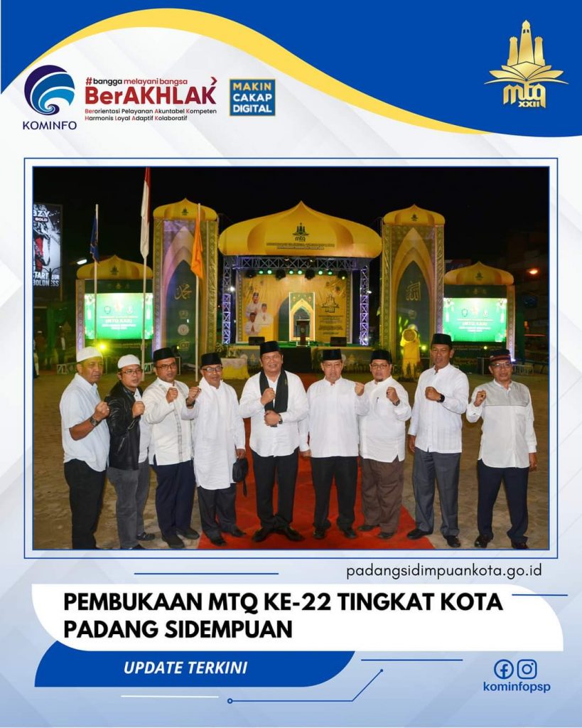 “Kita semua memohon doa agar pelaksanaan MTQ ke 22 ini dapat berjalan dengan baik dan sukses. Dan kita undang seluruh warga masyarakat Kota Padang Sidempuan untuk beramai ramai menyaksikan anak anak kita didalam perhelatan MTQ ini, dan mudah-mudahan dengan kegiatan ini dapat memperkuat ukhuwah kita dan memperkuat Kota kita adalah Kota yang Religius,” tandas Wali Kota.