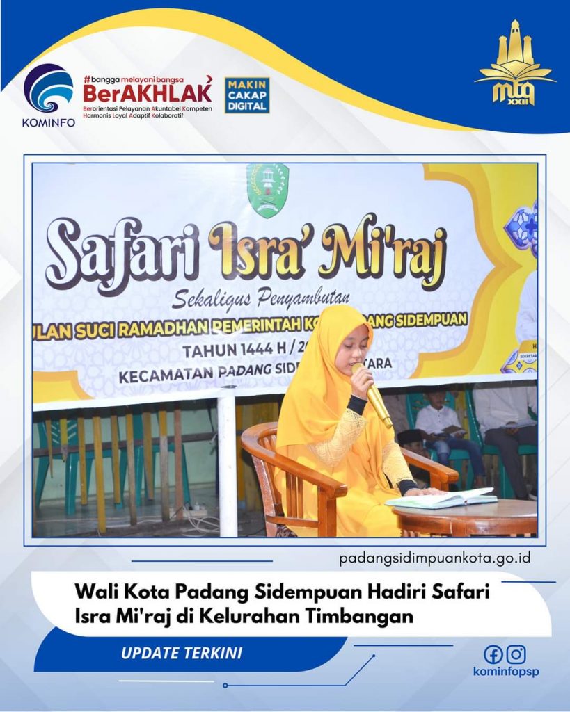 Wali Kota Padang Sidempuan Irsan Efendi Nasution menghadiri acara Safari Isra Mi’raj sekaligus penyambutan bulan suci Ramadhan tahun 1444 H di Kelurahan Timbangan, Kecamatan Padang Sidempuan Utara, Rabu (08/03/23).