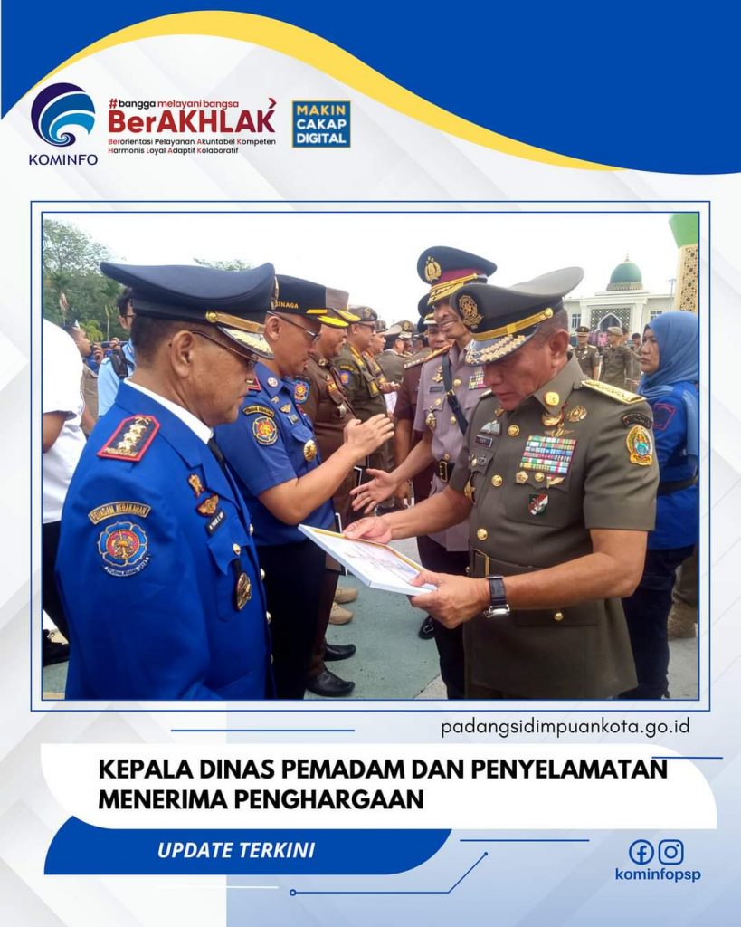 Kepala Dinas Pemadam dan Penyelamatan Kota Padang Sidempuan menerima piagam penghargaan dari Gubernur Sumatera Utara di Gedung Astaka Pancing, Medan, Sumatera Utara, Selasa (15/03/2023) dalam acara HUT Damkar ke 104