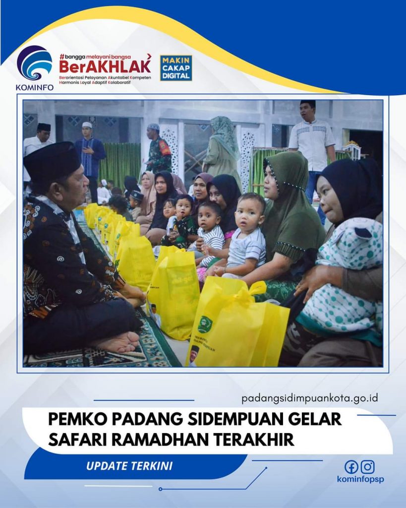 Pemerintah Kota (Pemko) Padang Sidempuan gelar Safari Ramadhan terakhir di Lingkungan III Kelurahan Palopat Maria Kec. Hutaimbaru, Selasa (11/04/2023).