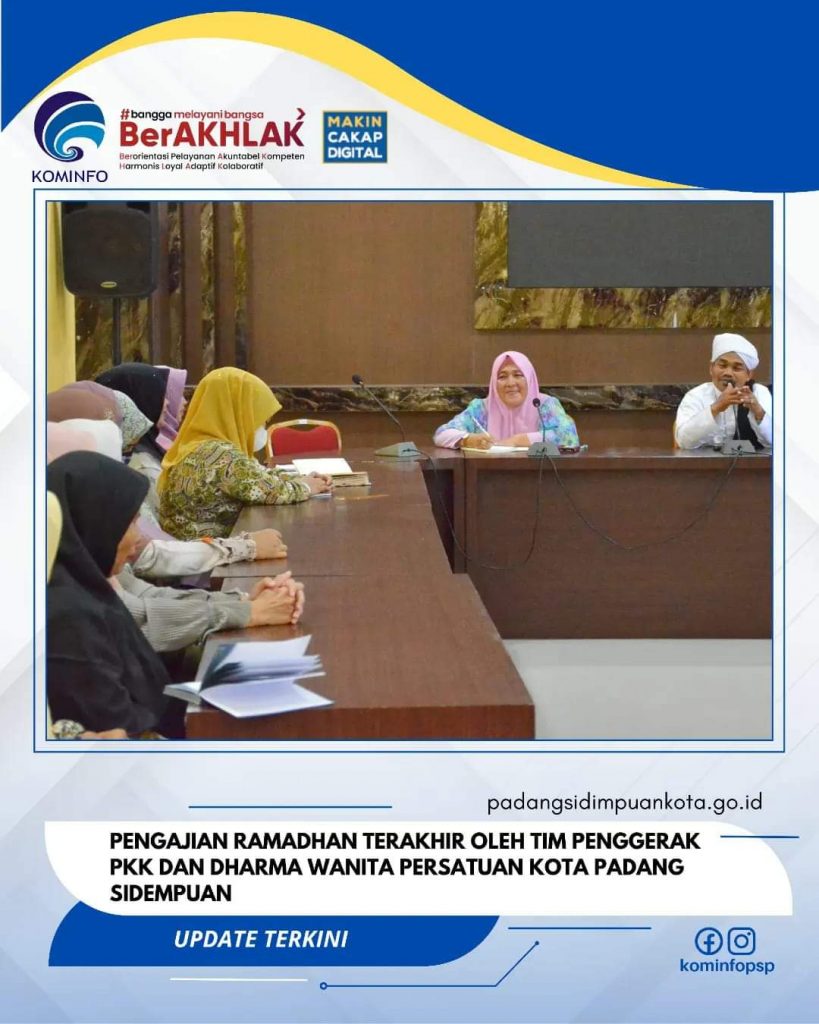 Pengajian Ramadhan yang ketiga oleh Tim Penggerak PKK dan Dharma Wanita Persatuan kota Padang Sidempuan dilaksanakan di Aula Kantor Walikota, Kamis (13/04/2023).