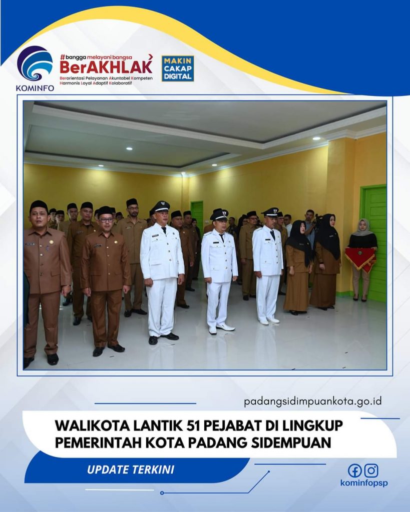 Adapun beberapa pejabat yang dilantik adalah Ira Kartika Pulungan sebagai Sekretaris di Inspektorat Kota Padang Sidempuan, Dasuki ST sebagai Sekretaris di Dinas Komunikasi & Informasi Kota Padang Sidempuan, drg. Susanti Lubis, MKM sebagai Direktur RSUD Padang Sidempuan.