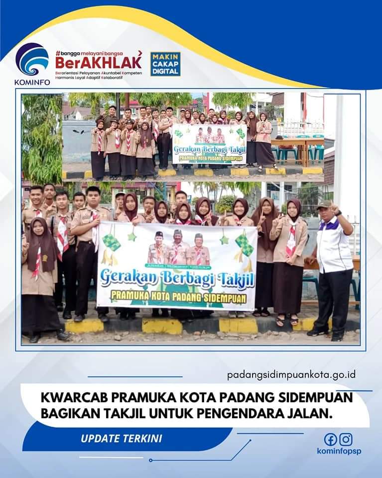 Kwartir Cabang Pramuka Kota Padang Sidempuan selenggarakan pembagian takjil serentak kepada pelintas ruas jalan di Kota Padang Sidempuan, Jumat (14/04/2023).
