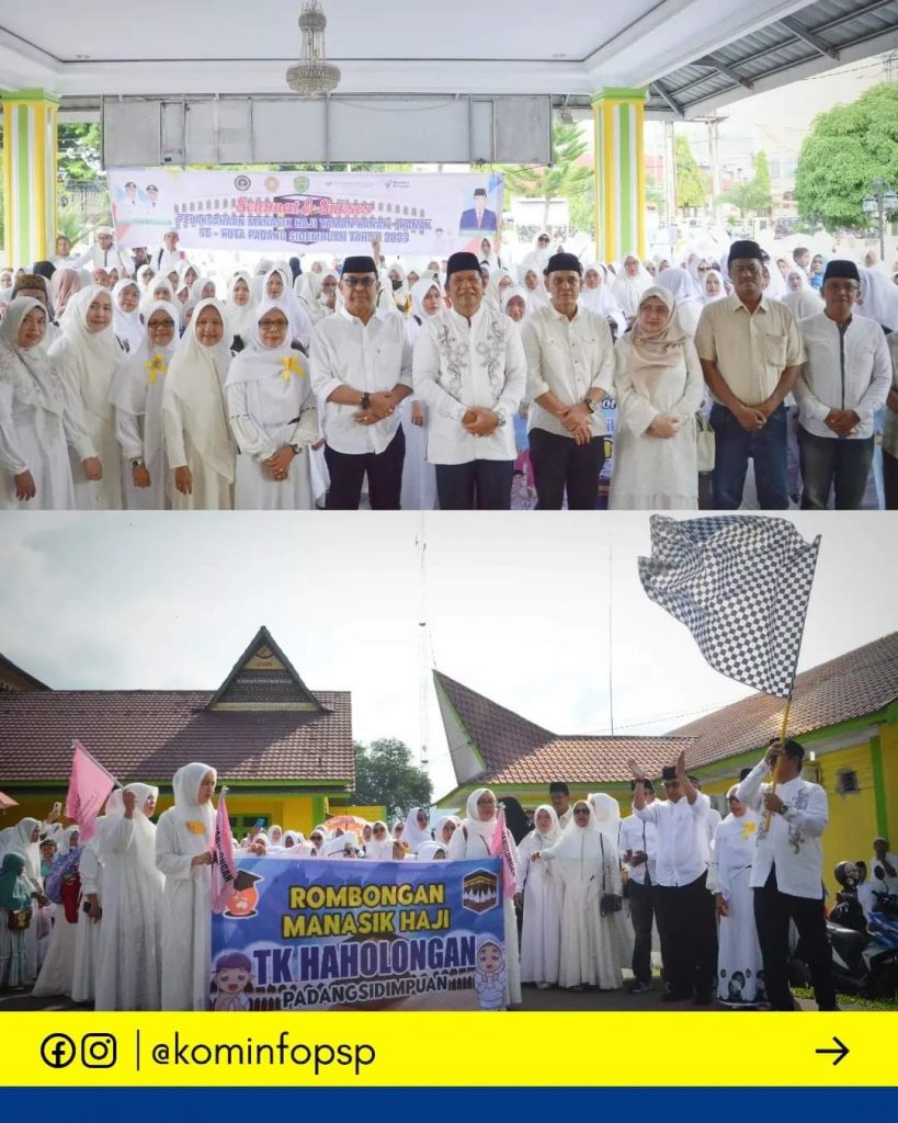 Wali Kota Padang Sidempuan Irsan Efendi Nasution, SH, MM melepas peserta Manasik Haji Akbar tingkat Pendidikan Anak Usia Dini (PAUD) dan Taman Kanak-kanak (TK) di Halaman Kantor Wali Kota, Sabtu (13/5/2023).