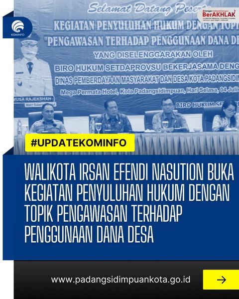 Wali Kota Irsan Efendi Nasution Buka Kegiatan Penyuluhan Hukum Dengan Topik Pengawasan Terhadap Penggunaan Dana Desa di ballroom Hotel Mega Permata, Selasa (04/07/23).