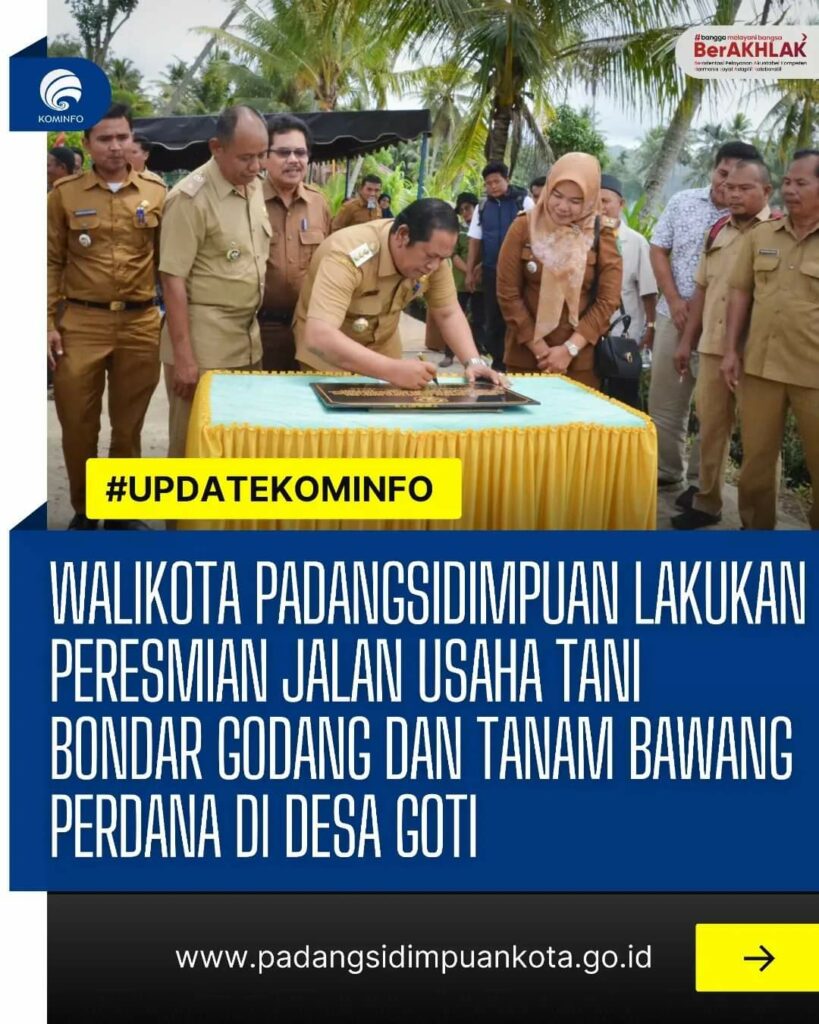 Walikota Padangsidimpuan, Irsan Efendi Nasution,S.H, MM resmi memotong tali peresmian jalan usaha tani dan menanam langsung bibit bawang merah di desa Goti tersebut. Beliau menyampaikan pemerintah Kota Padangsidimpuan sangat mengapresiasi dan penghargaan atas pembangunan Jalan Usaha Tani ini. Ia mengajak para petani yang memanfaatkan jalan ini, untuk serius menanam komoditas pertanian yang tentunya menguntungkan bagi petani. Beliau juga turut memberikan bibit ikan mas kepada masyarakat desa Goti.