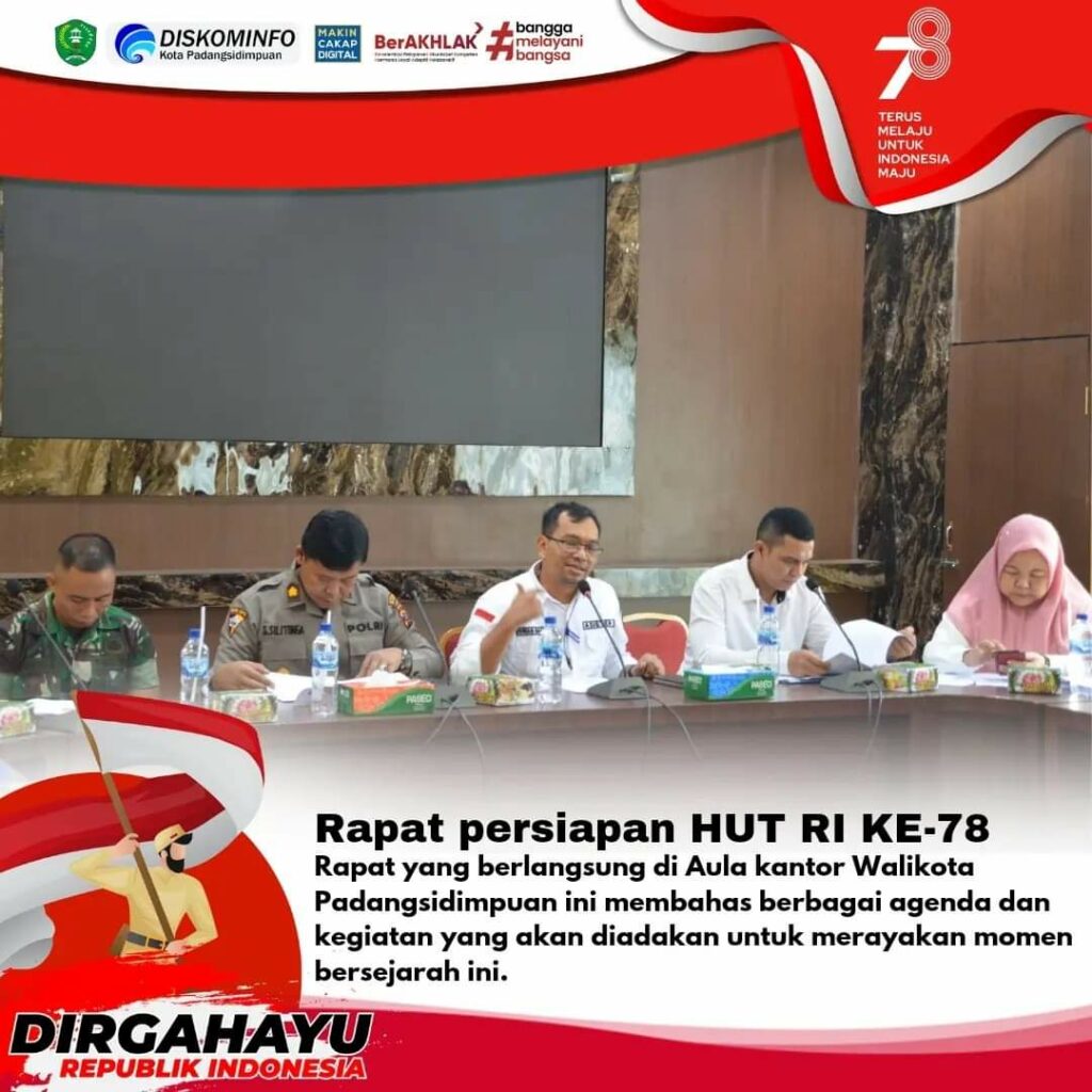 Dalam rangka peringatan Hari Ulang Tahun (HUT) ke-78 Kemerdekaan Republik Indonesia, Pemerintah Kota (Pemko) Padangsidimpuan menggelar Rapat Persiapan HUT ke-78 Kemerdekaan Republik Indonesia Tingkat Kota Padangsidimpuan Tahun 2023, Rabu (2/08/2023).